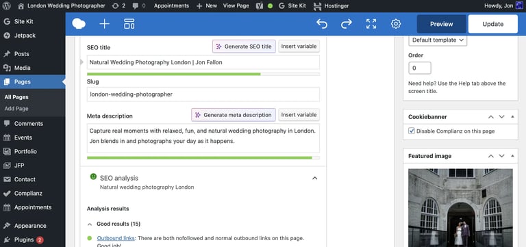 Self-managed WordPress website for a service-based brand. yourweddingphoto.co.uk